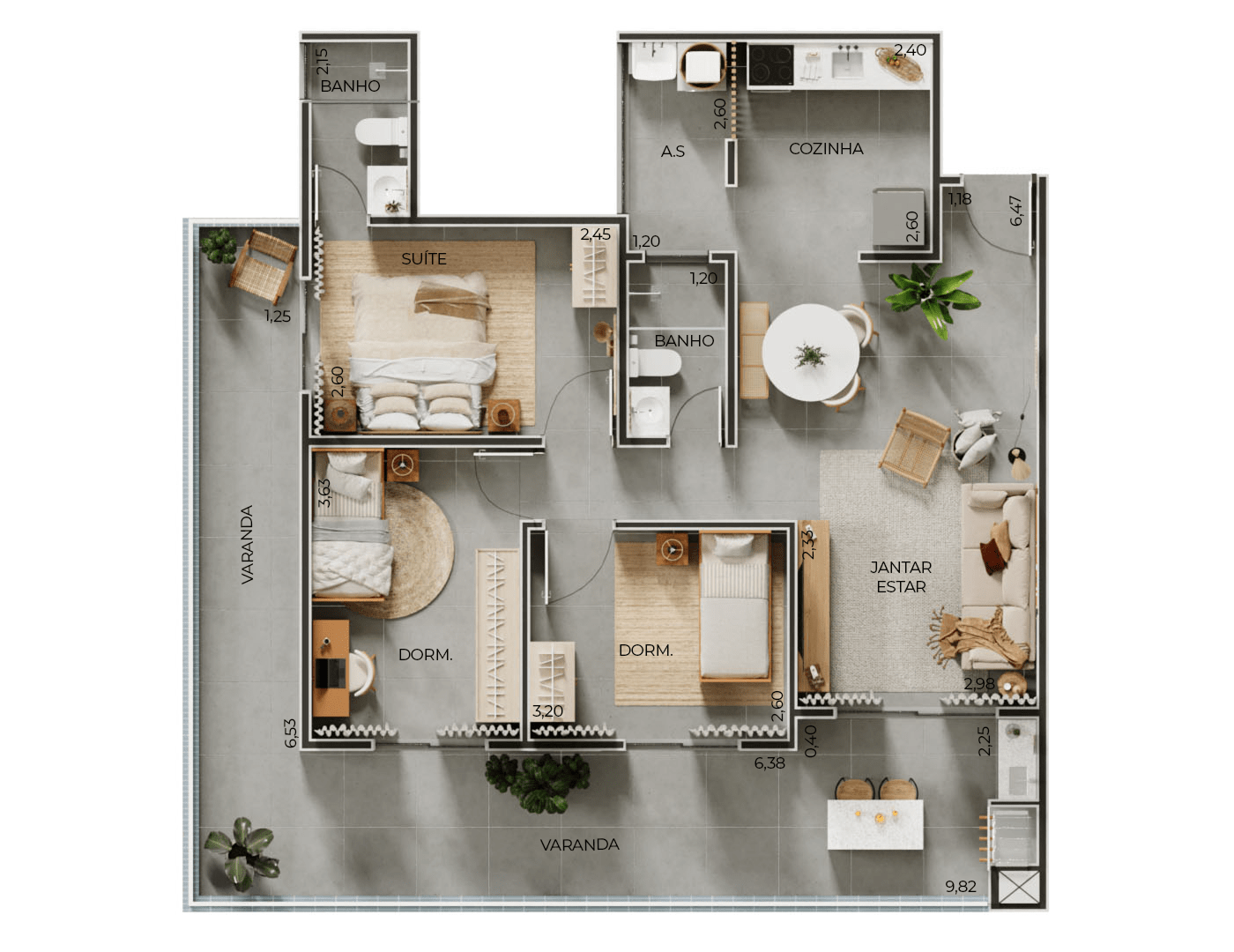• Tipos: 2 e 3 dormitórios