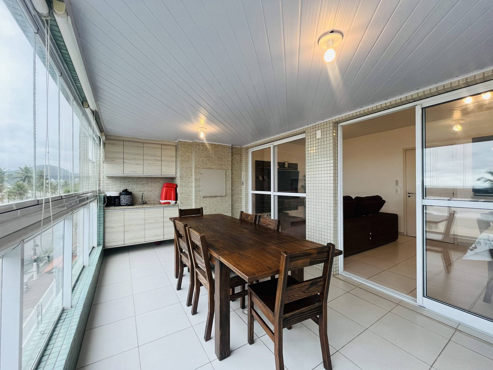 • Varanda gourmet com churrasqueira e vista livre para o mar